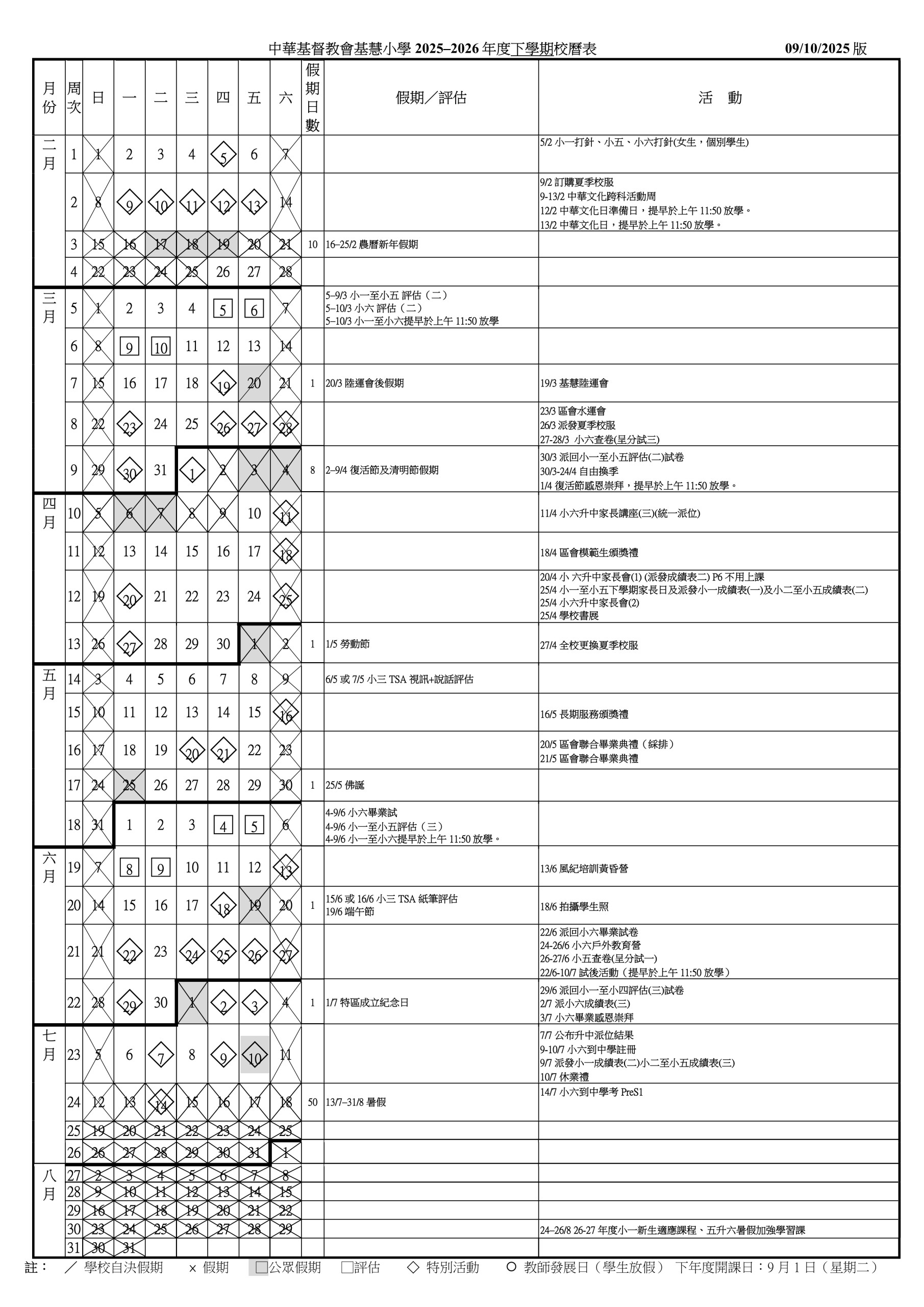 2025-2026年度校曆表
