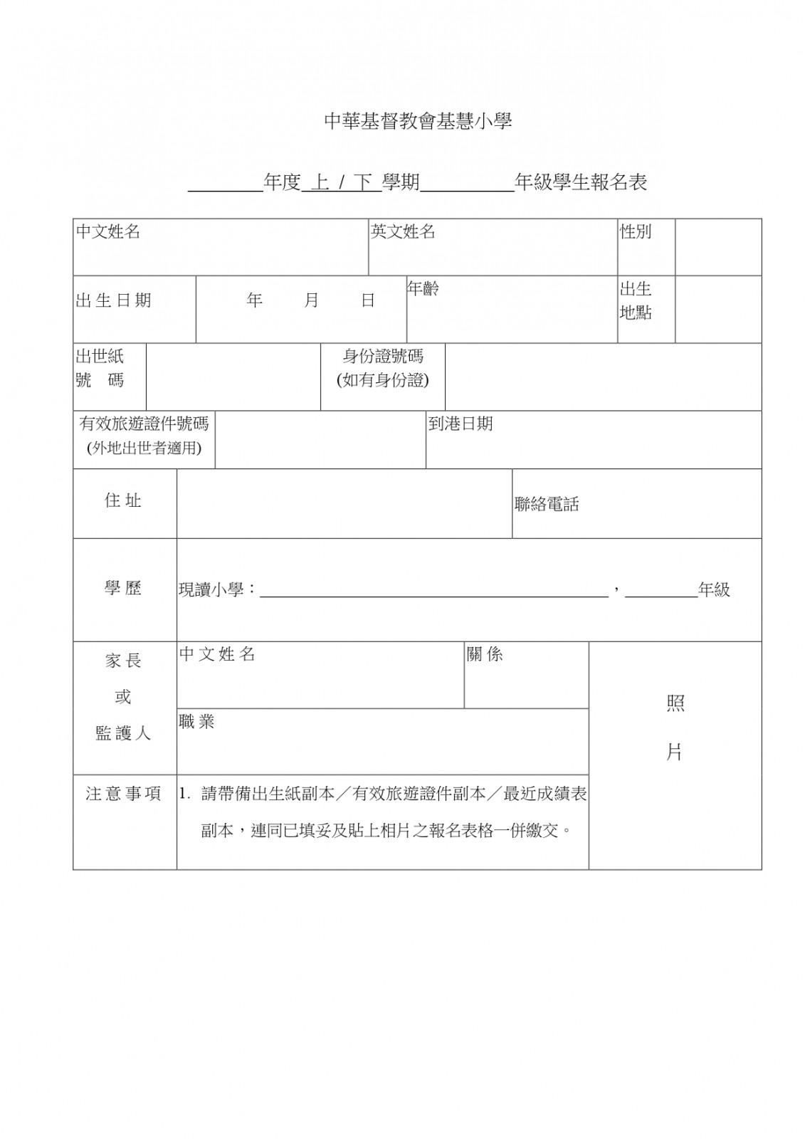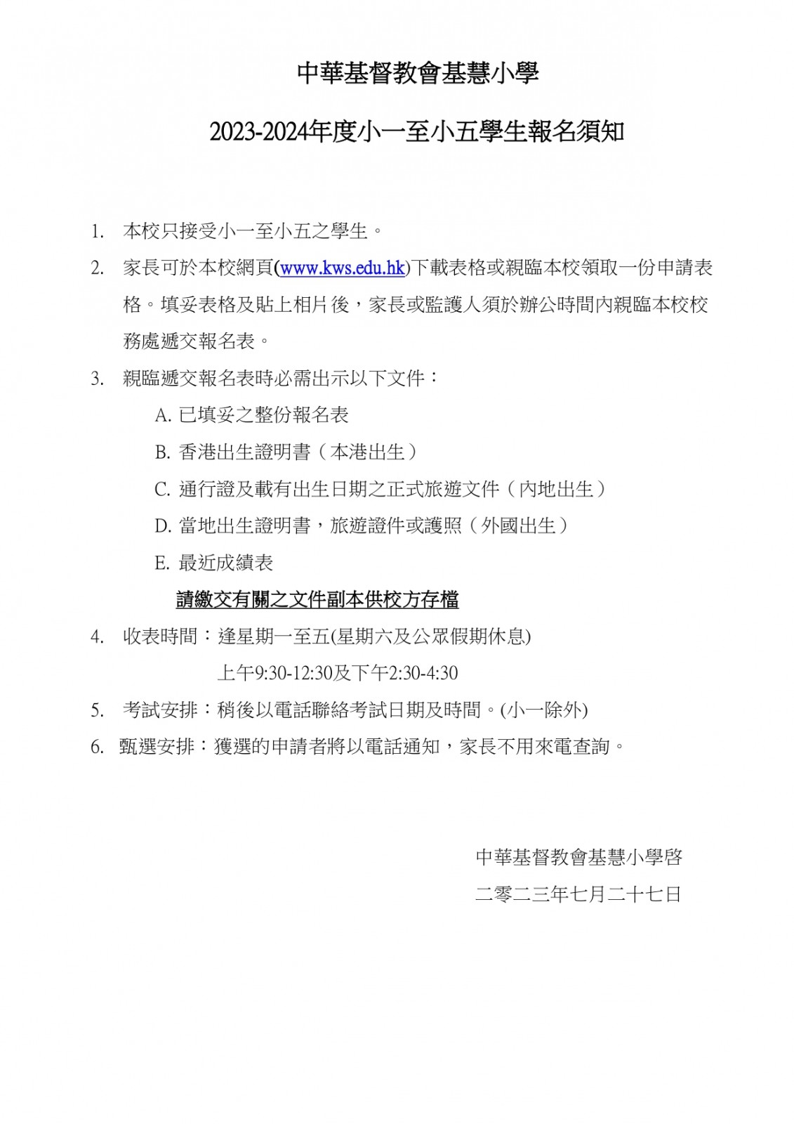 2023-2024學年小一至小五學生報名須知及報名表