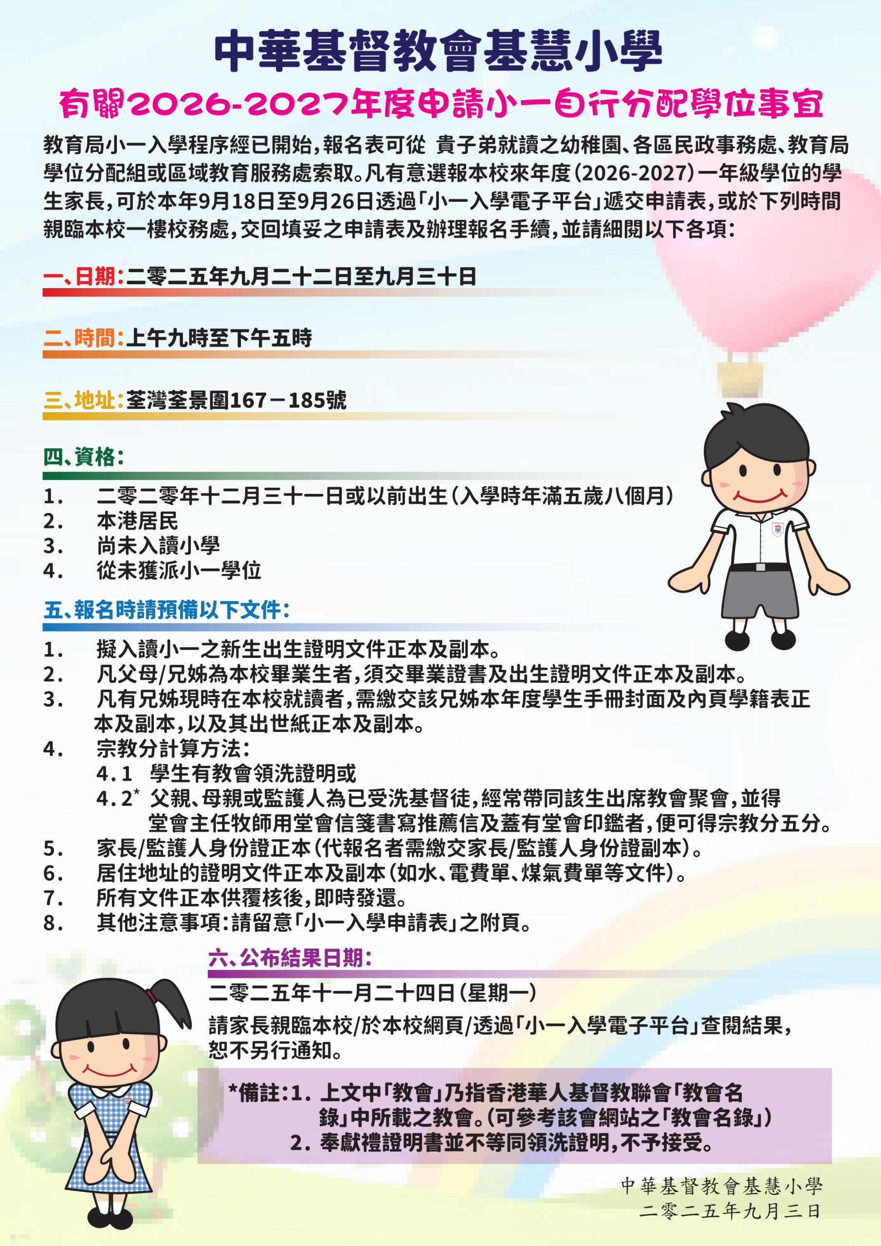 2026-2027申請小一自行分配學位事宜