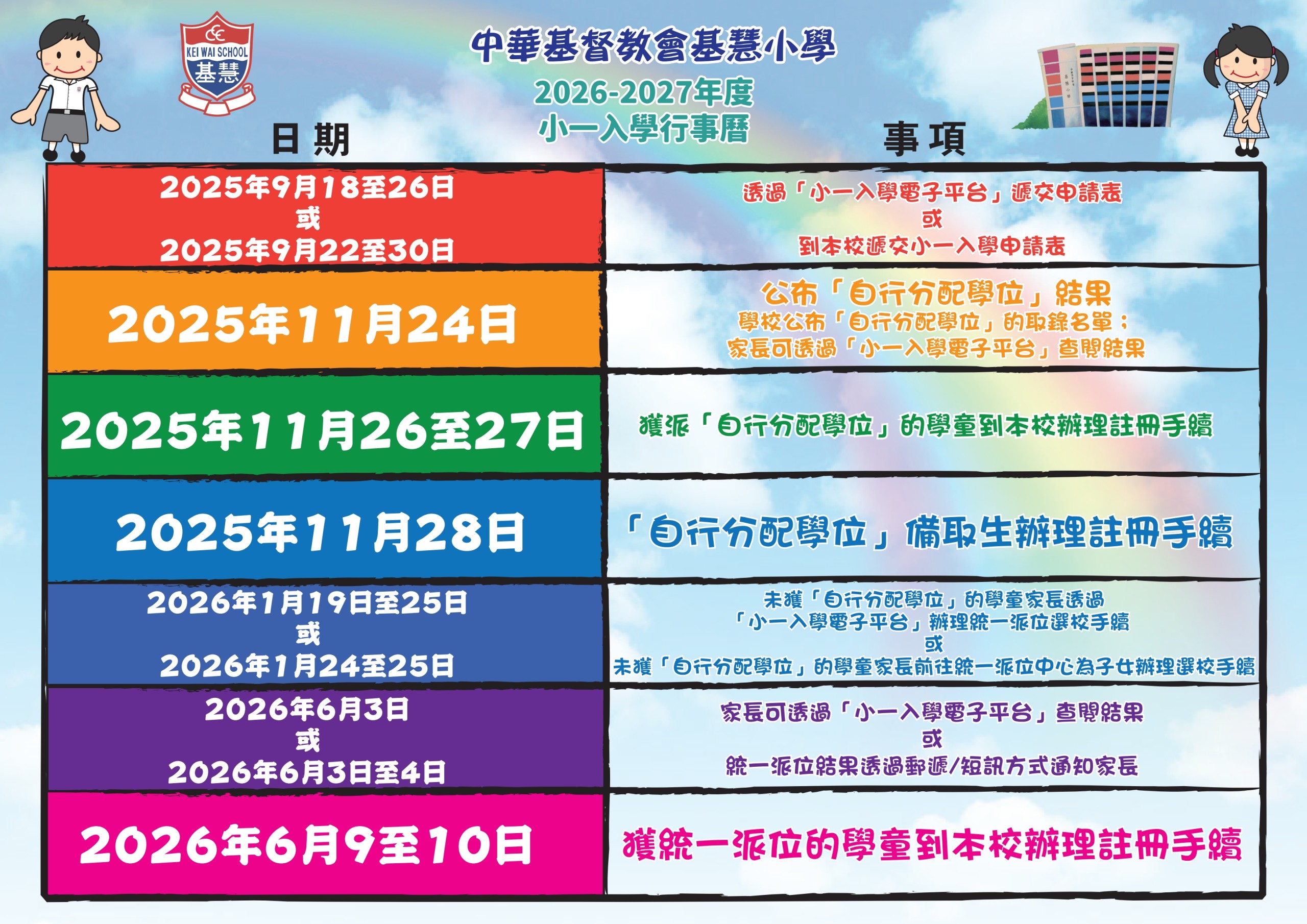 2026-2027小一入學行事曆