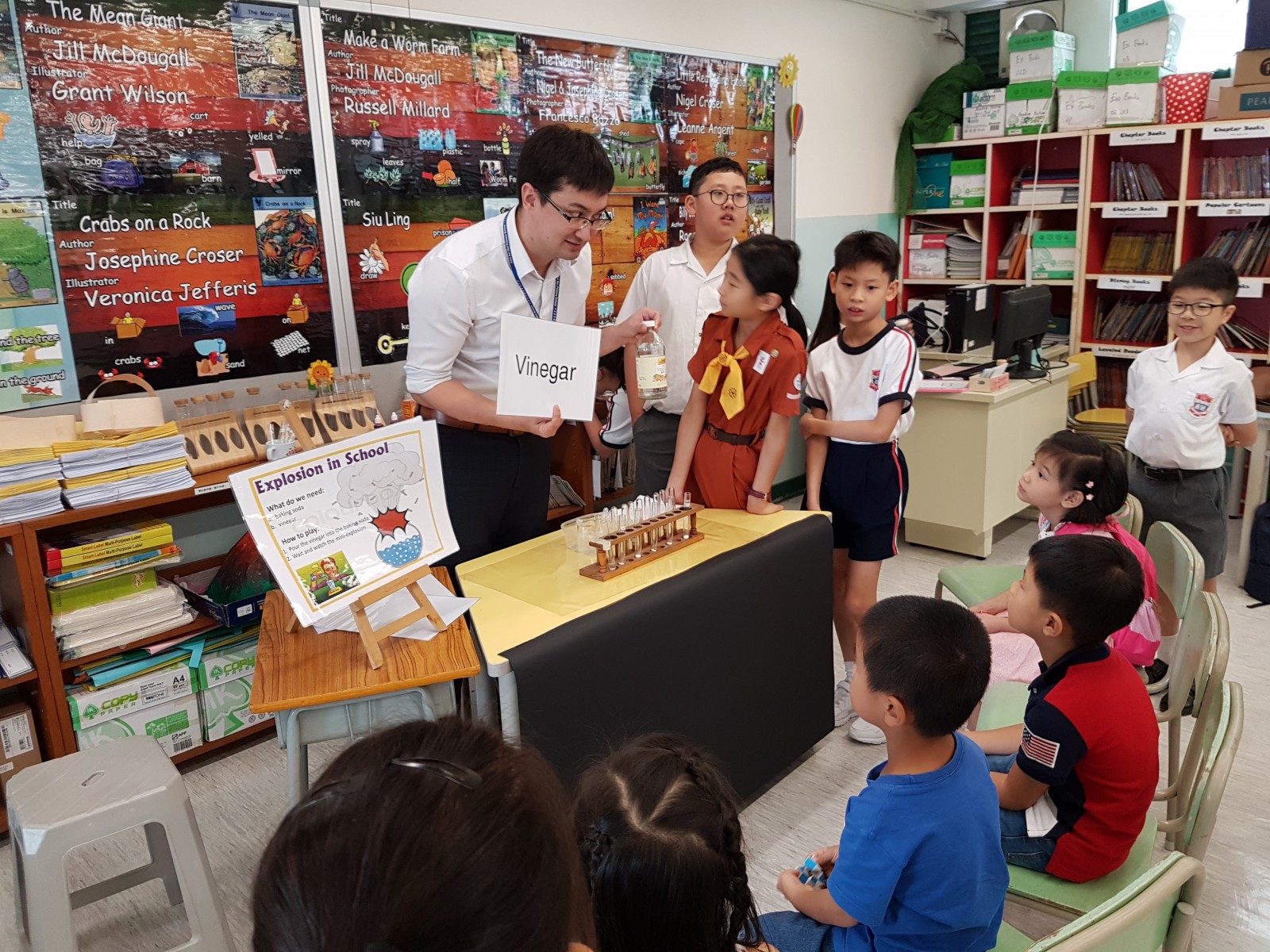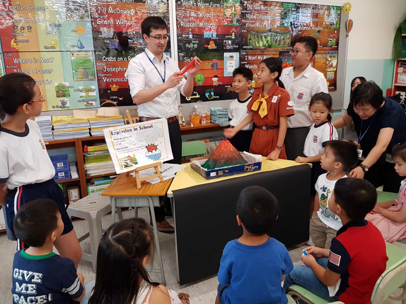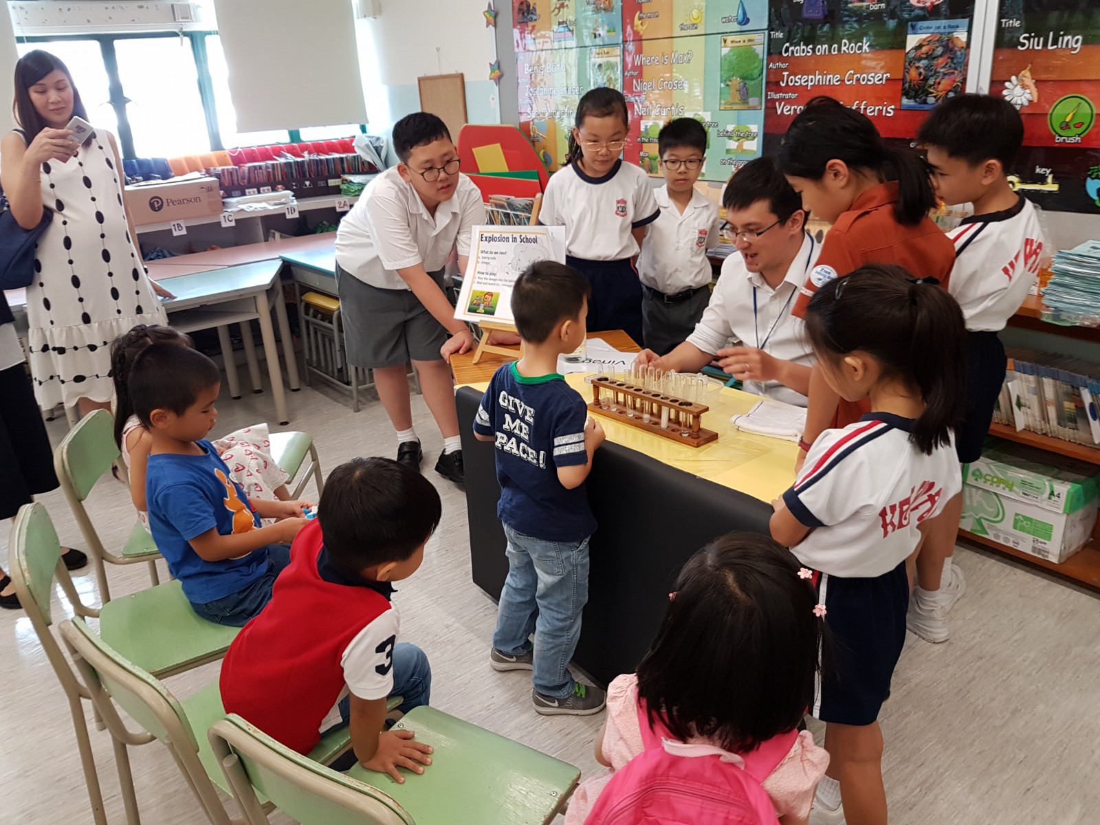 Each class was assigned with 6 to 8 Ambassadors. They awarded a sticker to the students who were able to read aloud the designated short passage on the Passbook.