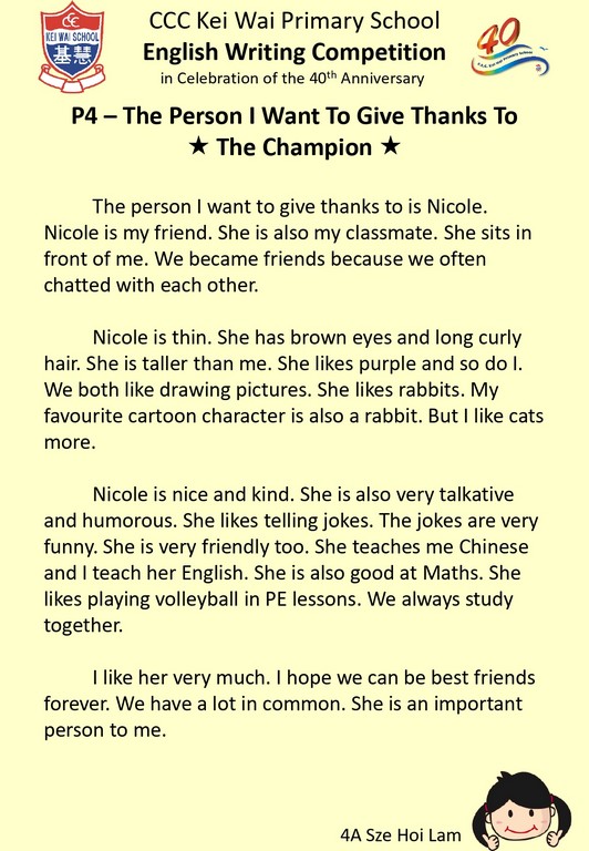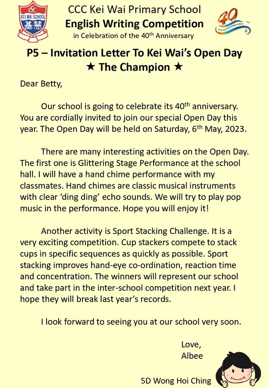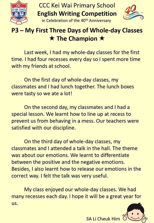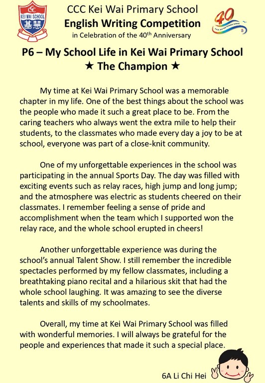English Writing Competition (In celebration of 40th Anniversary)