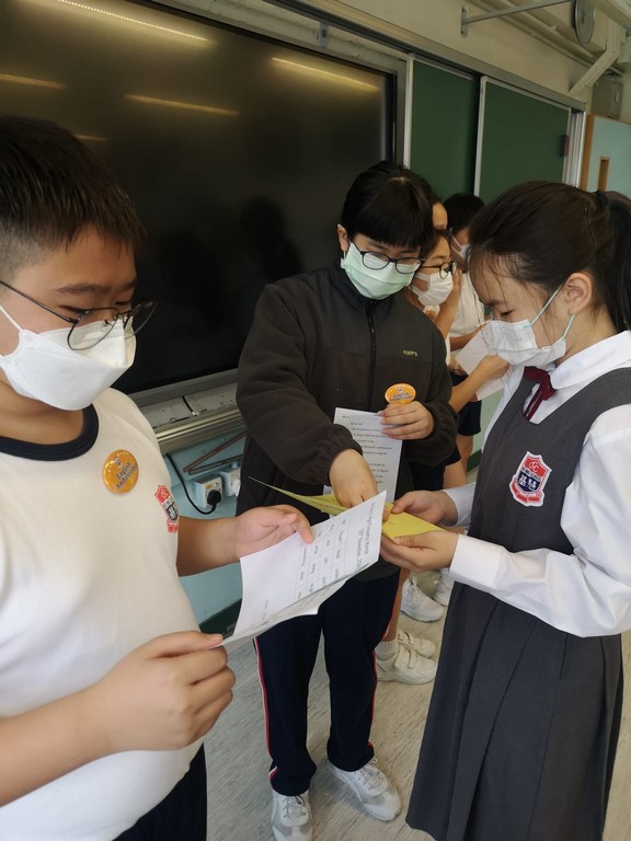 English Ambassadors were doing the Passbook Activities with their schoolmates at recess.