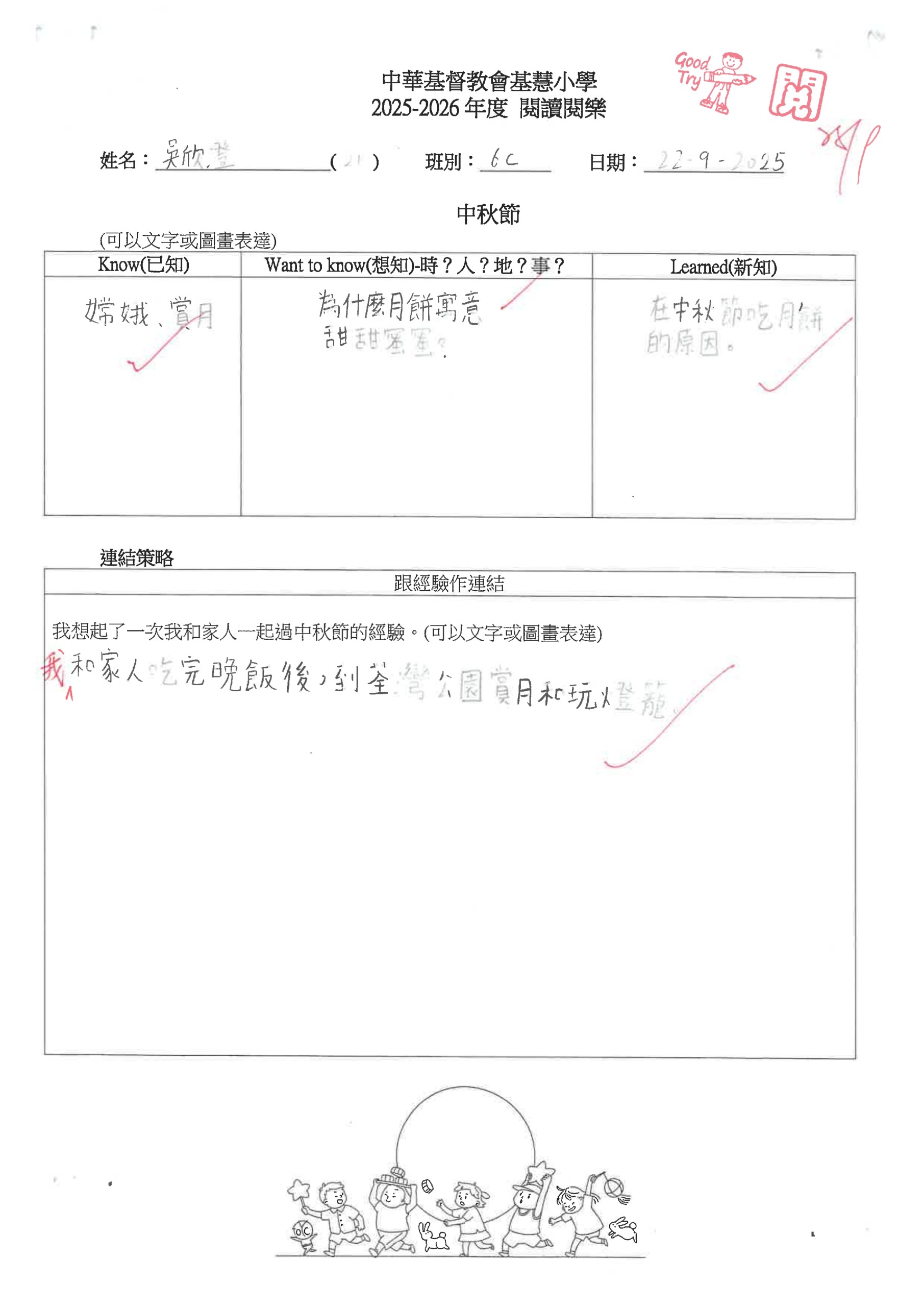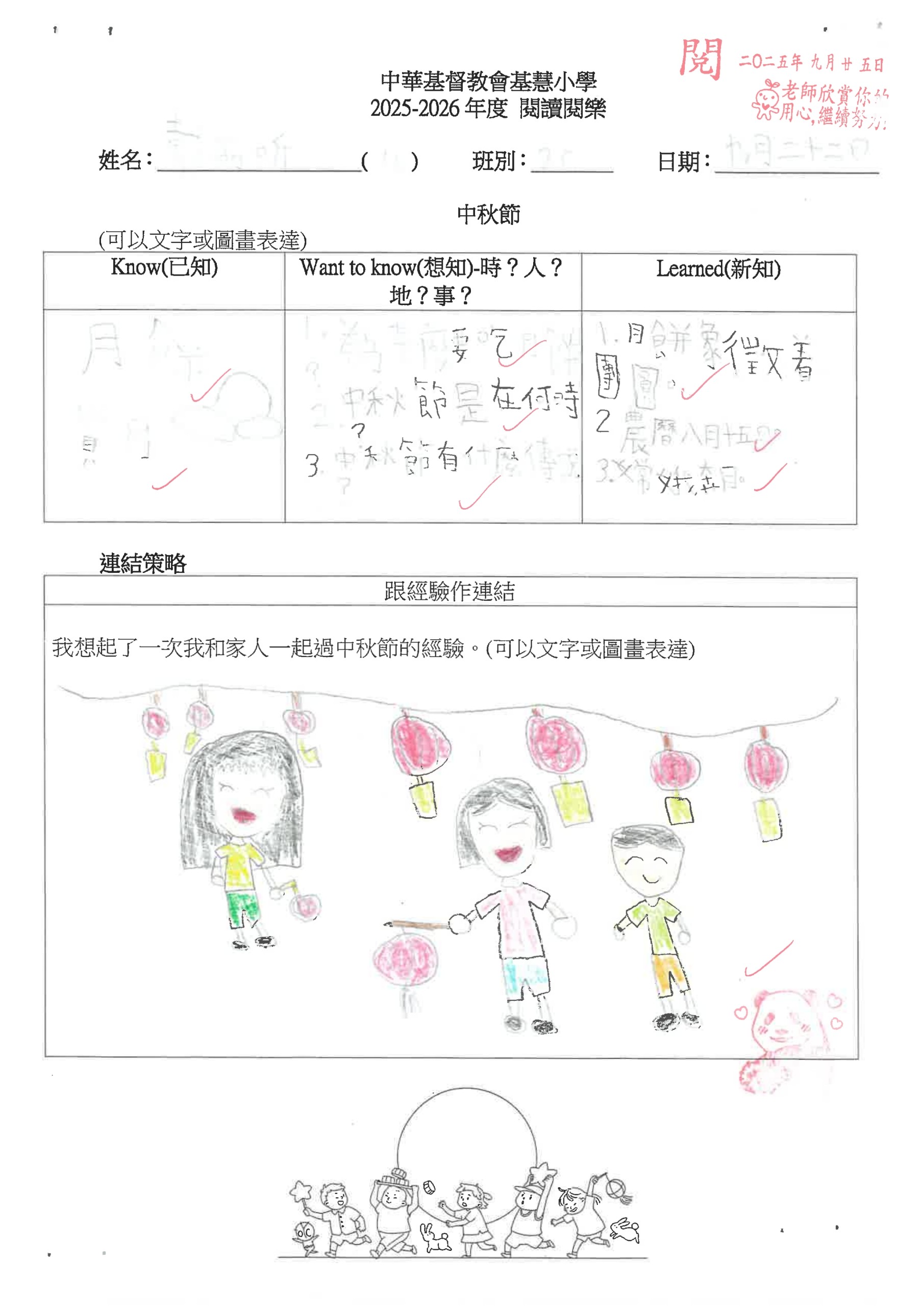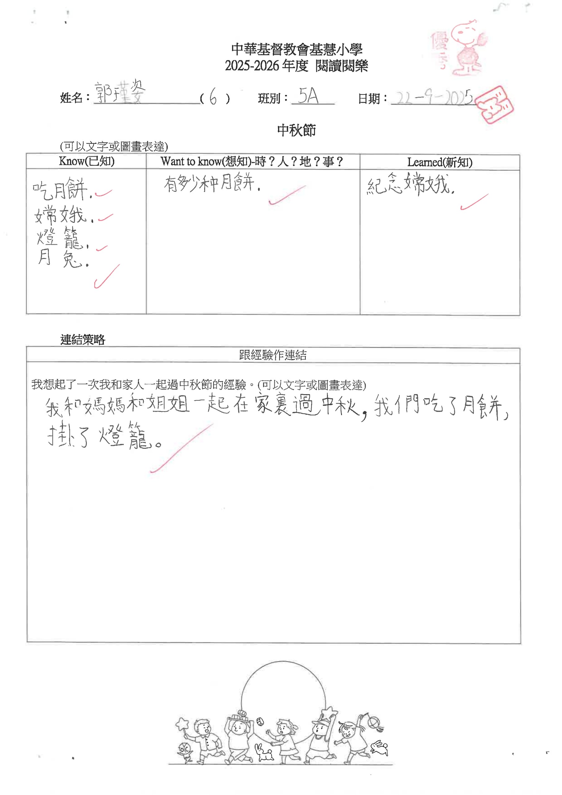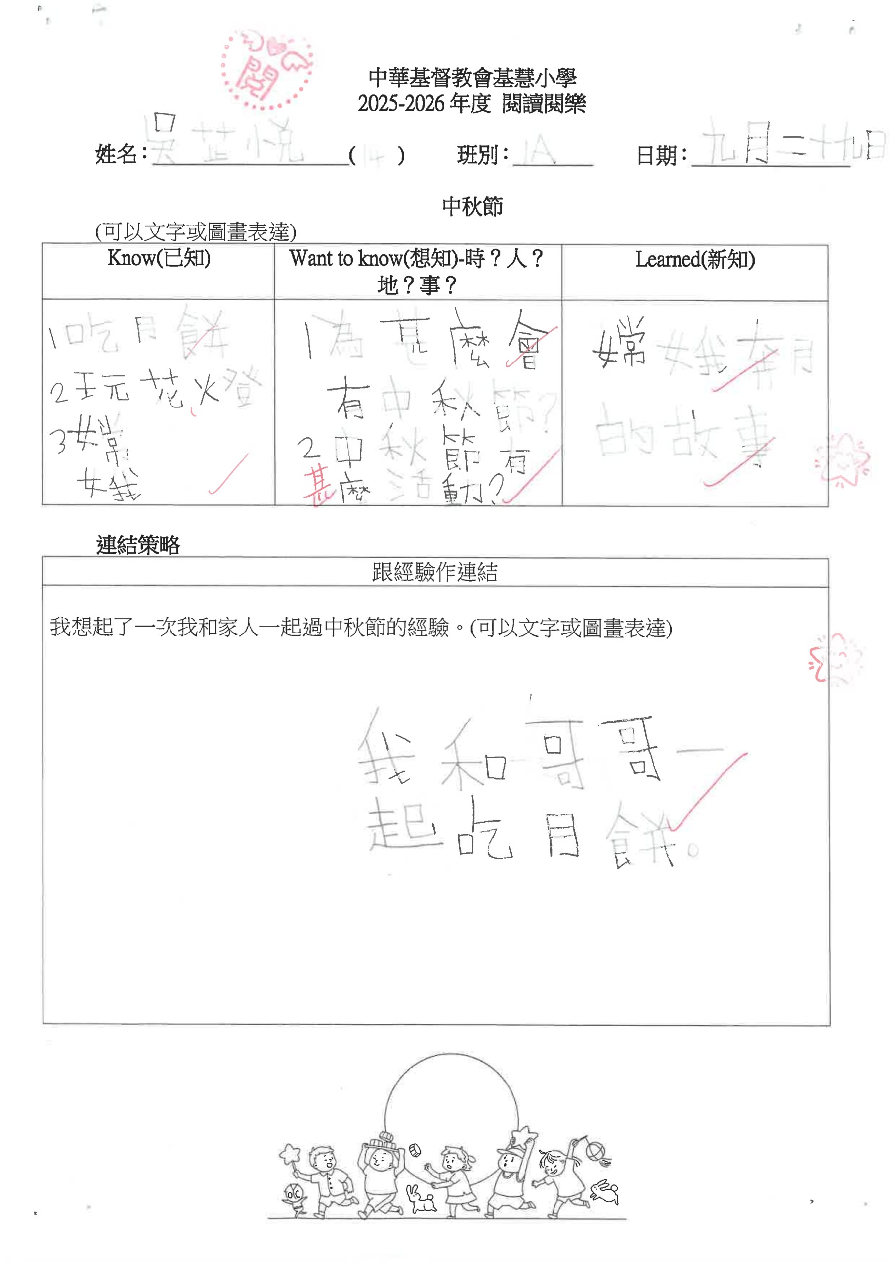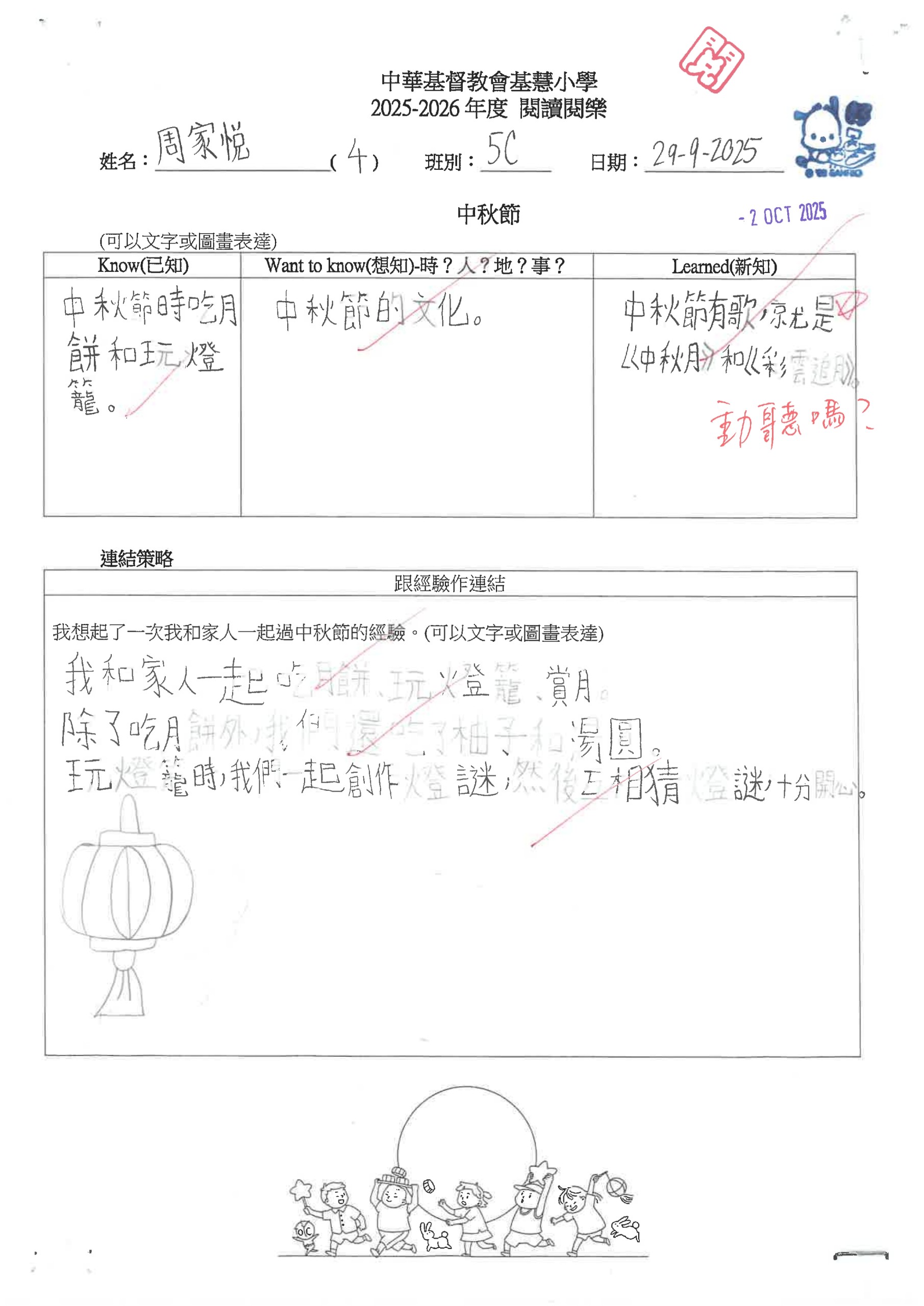 閱讀悅樂課 – 中秋節工作紙